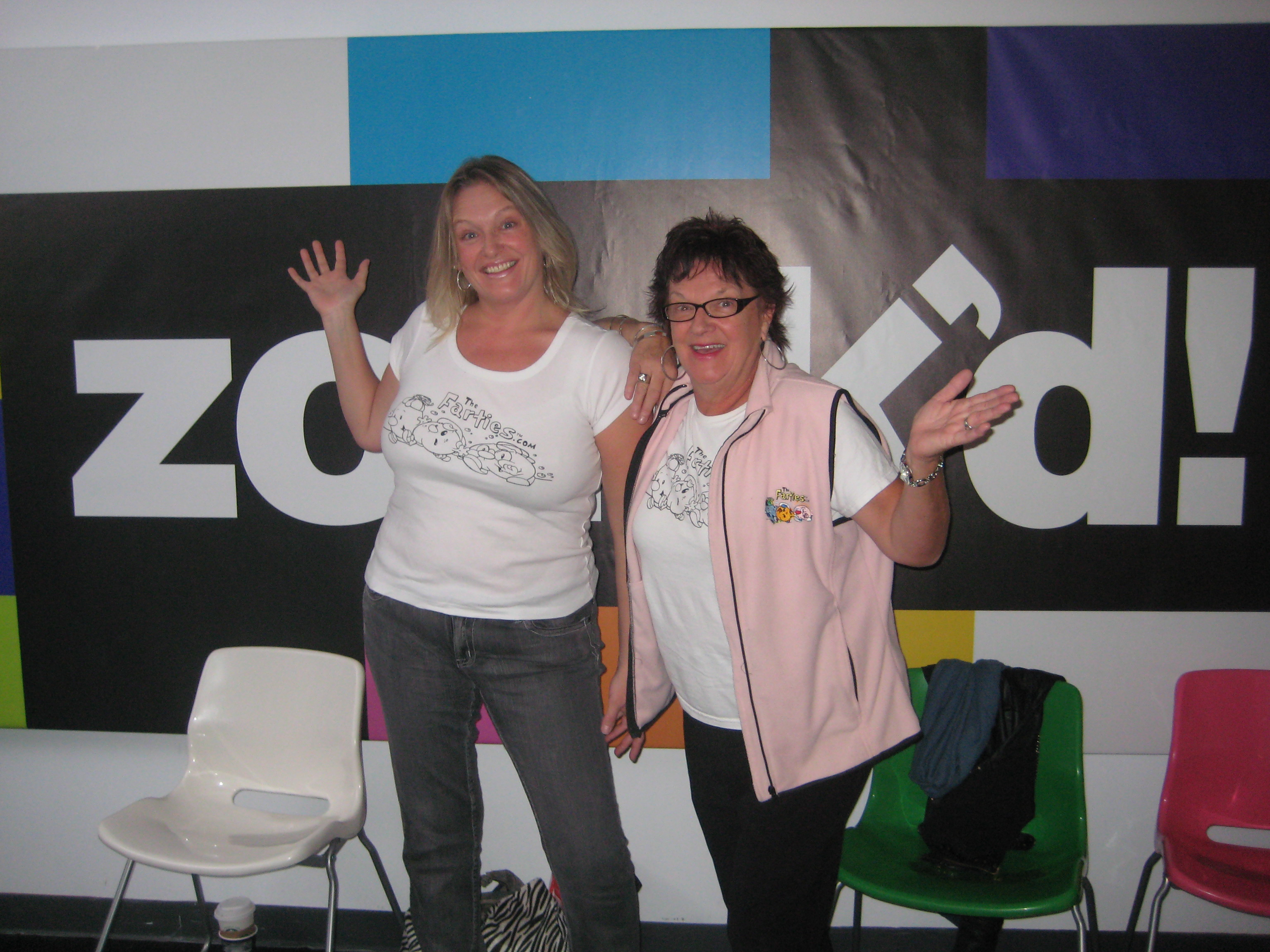 We arrived in Toronto to taped our appearance on Zoink’d. Zoink'd was a YTV production in Toronto. The show was about adults performing for kid judges who weigh in on the “silly, ridiculous and often comical talents” of adults. The flatulence-loving, well-mannered Fartie Ladies are the Authors of "The Fartie Series" and along with the Fartie books have also written their own songs to go with the family of cartoon talking "BUTTS:..and their gassy adventures.. The Fartie Ladies were at a bit of a disadvantage as the third member of The Fartie Ladies, wasn’t allowed to perform with them because she was too young....the show was for adults' only The Fartie Ladies landed a spot on Zoink’d thanks to Lindsay Neeley, an assistant producer on Dragon’s Den when they appeared on that show in 2010. “She just loved us,” Van Cromvoirt said. “She really gets our message of good manners in a fun way.” That connection paid off when Neeley asked show host and comedian Adam Christie to interview the youngest member of the Fartie Ladies that came with the family to cheer us on. It was great that "Honey" of the Fartie Ladies got to be part of the show, The Fartie Ladies came in second to a magician who used doves in his act. “As soon as I saw those doves, I knew we were in trouble,” Funny said of The Fartie Ladies.. “A lot of folks young and older really think "The Farties" need their own TV show,” . “We would hit all ages. There would be no barriers … Everybody has gas.” Lets blow this out of the water and really help reduce STRESS...